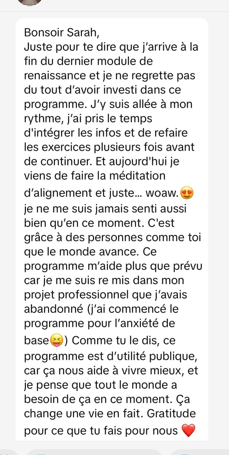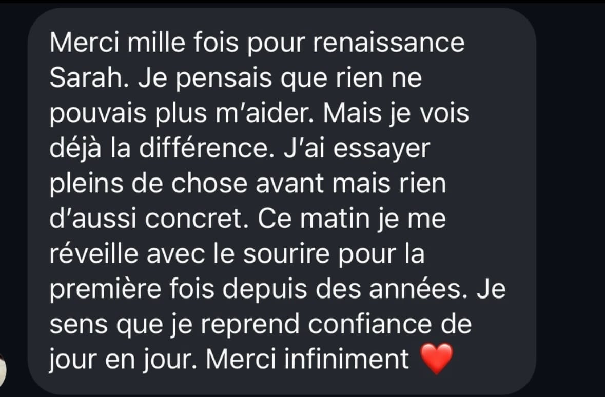 Je suis tellement convaincue de la puissance de Renaissance que je te propose une garantie 100% sans risque :